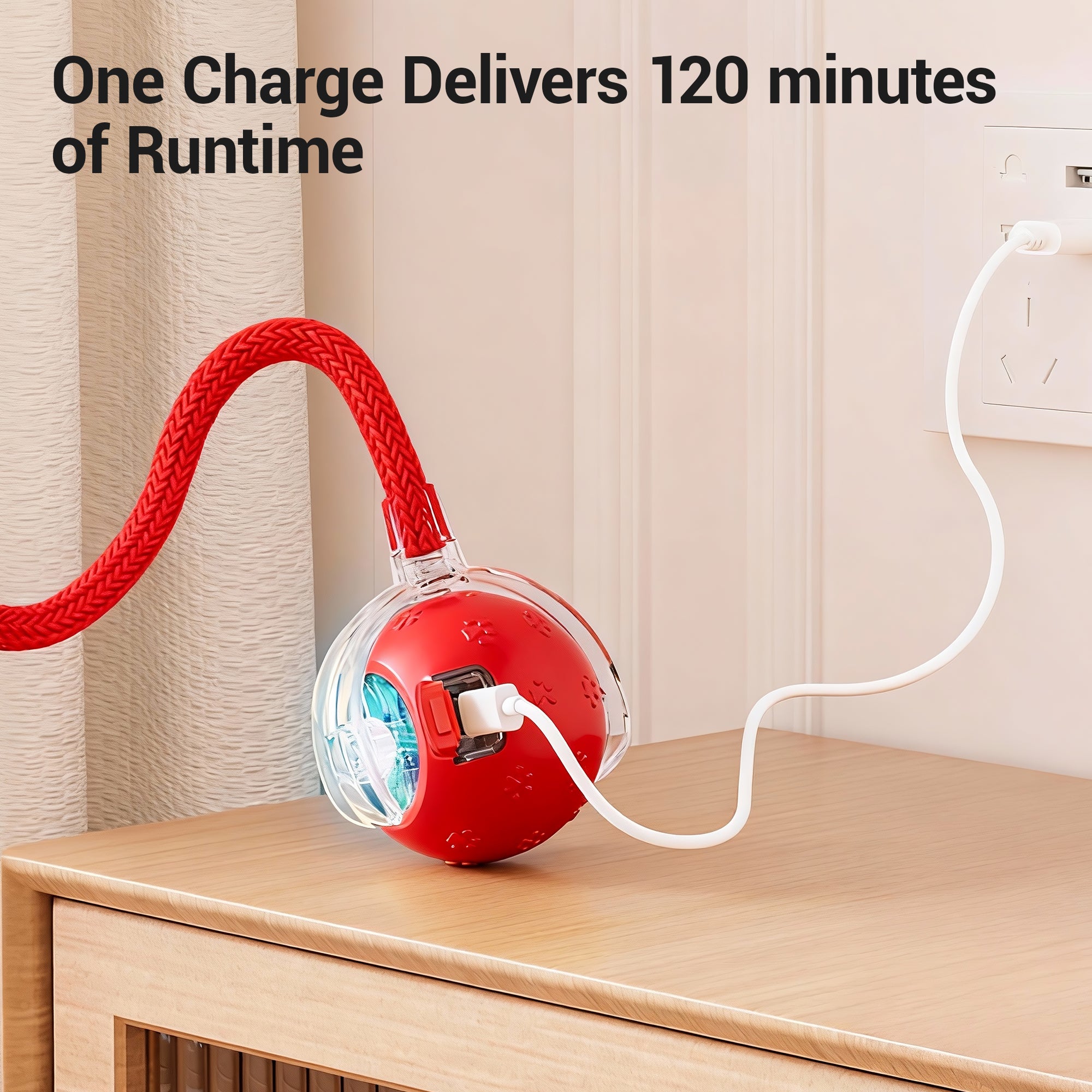 This motorized kitten ball comes with a built-in rechargeable battery, which takes just 45 minutes to fully charge and provides up to 1.2 hours of playtime. It is recommended to use a mobile phone charger to recharge the interactive cat toy. No need to buy extra batteries.